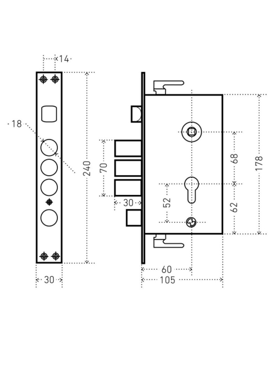 - Расстояние от центра механизма секрета до задвижки: 52 мм;