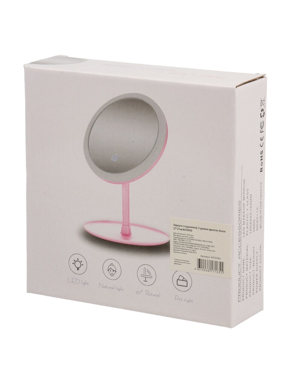 Настольное зеркало с подсветкой 17х27 см — это оптимальное решение для тех, кто ищет удобство и функциональность в уходе за собой. Благодаря трем уровням яркости, вы сможете подобрать идеальное освещение для макияжа, бритья или ухода за кожей. Часто спрашивают, какое зеркало выбрать для макияжа — именно этот вариант обеспечивает равномерный свет без искажений, что важно для точности нанесения косметики.