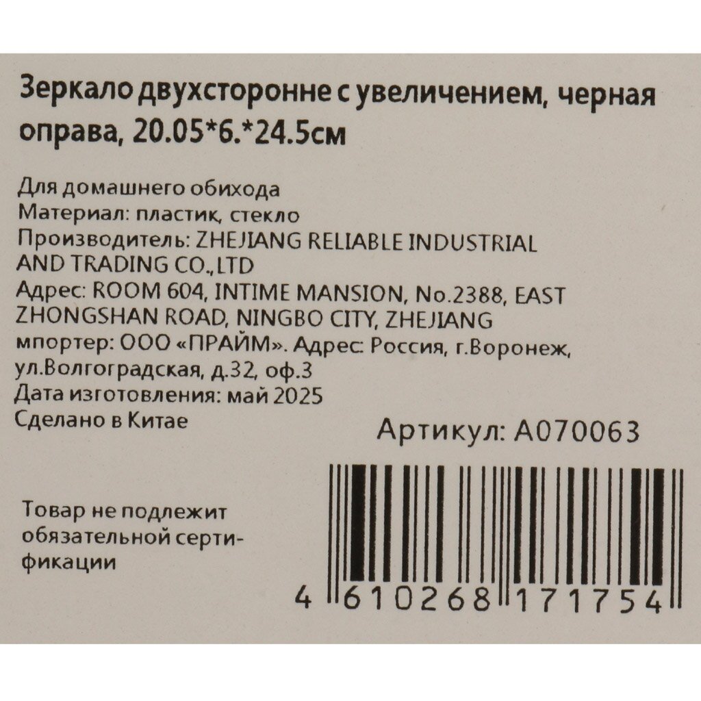 Зеркало настольное, 20.05х6х24.5 см, 2х стор, с увелич, черная оправа, A070063