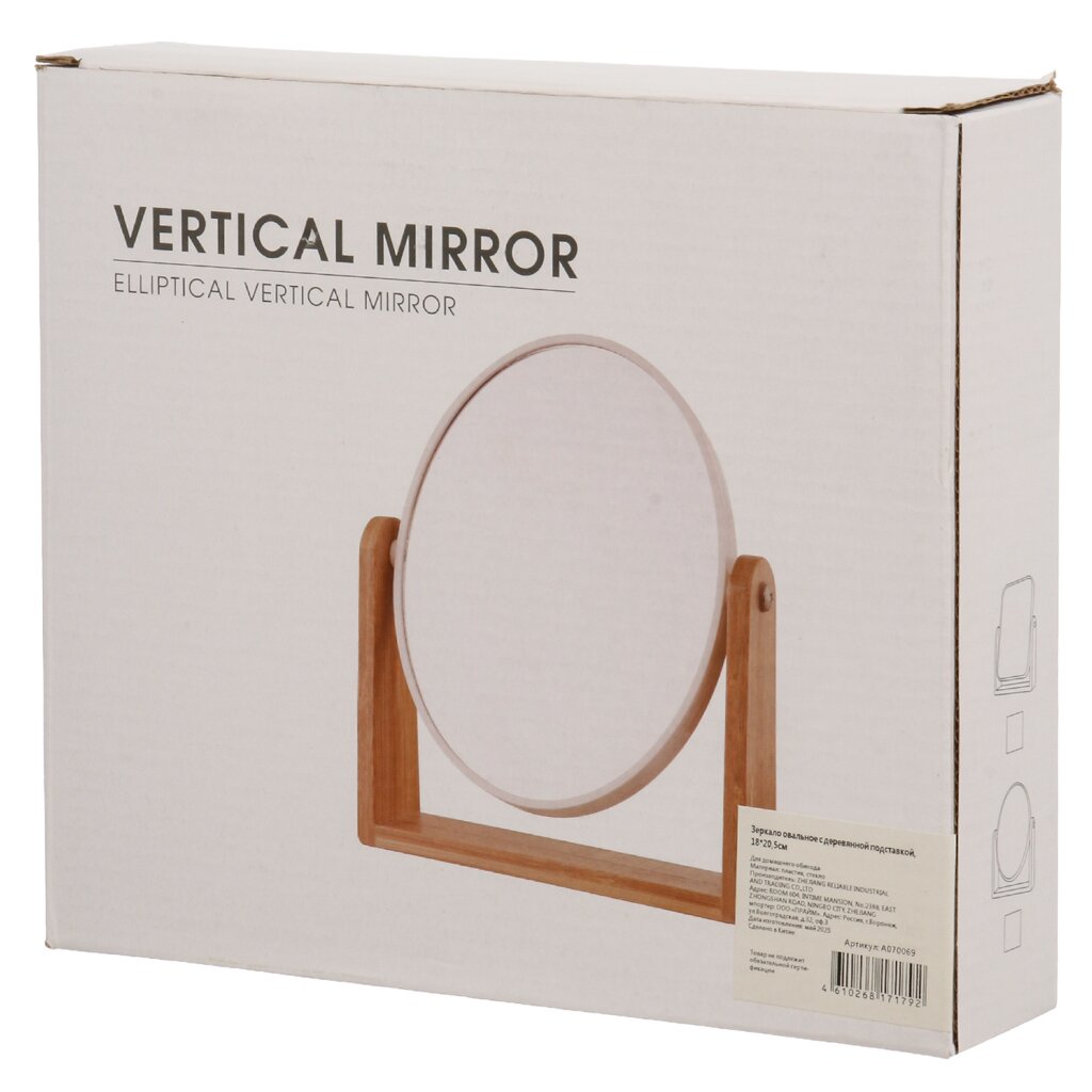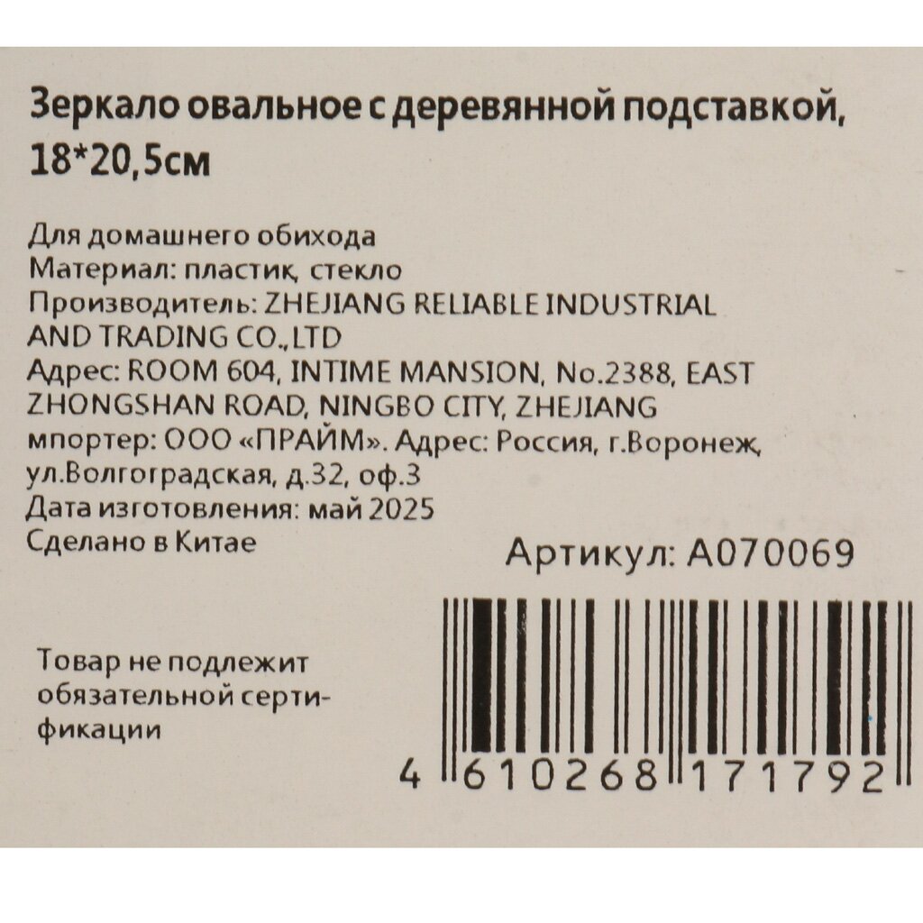 Зеркало настольное, 18х20.5 см, овал, с дерев подставкой, A070069