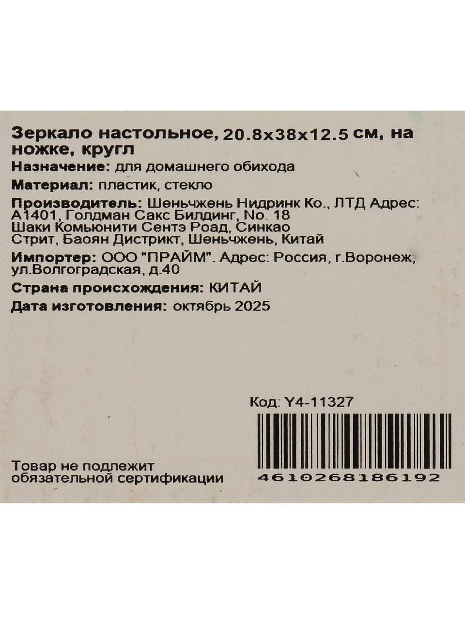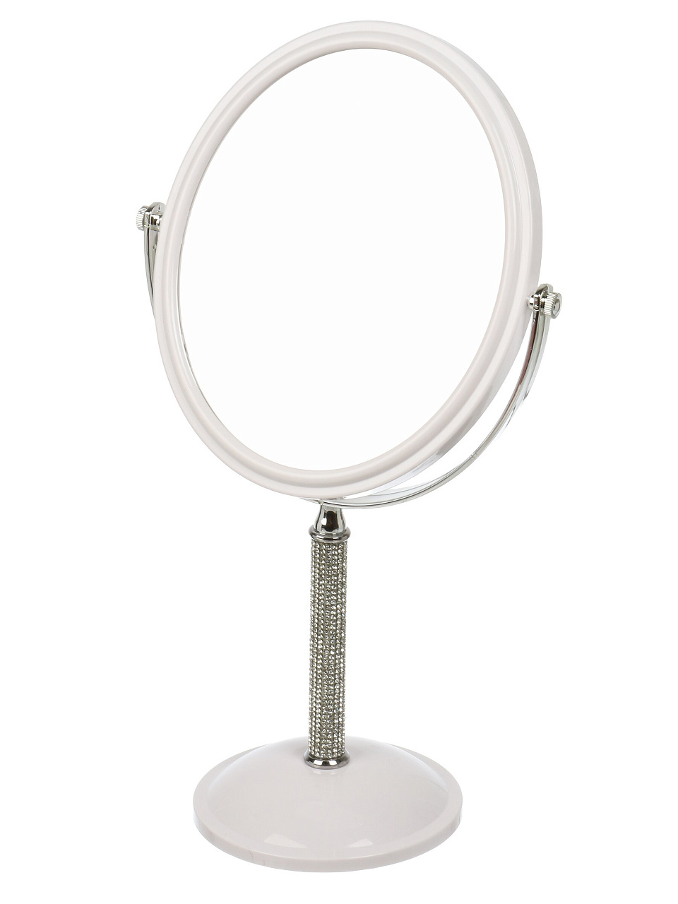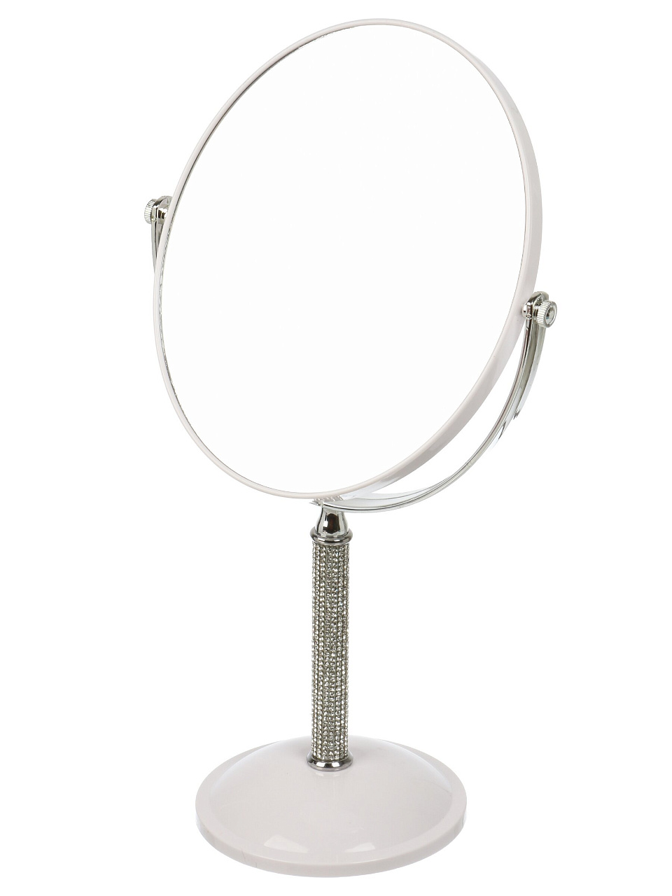 Зеркало настольное, 20.8х35.5х12 см, пластик, круглое, на ножке, белое, Y4-11327