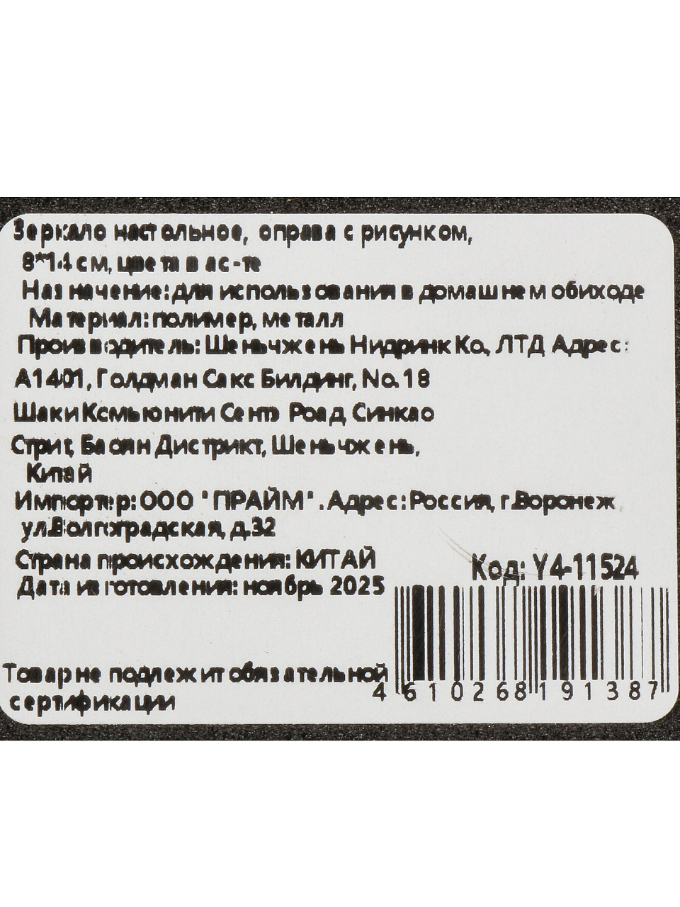 Зеркало настольное, 8х14 см, оправа с рисунком, в ассортименте, Y4-11524