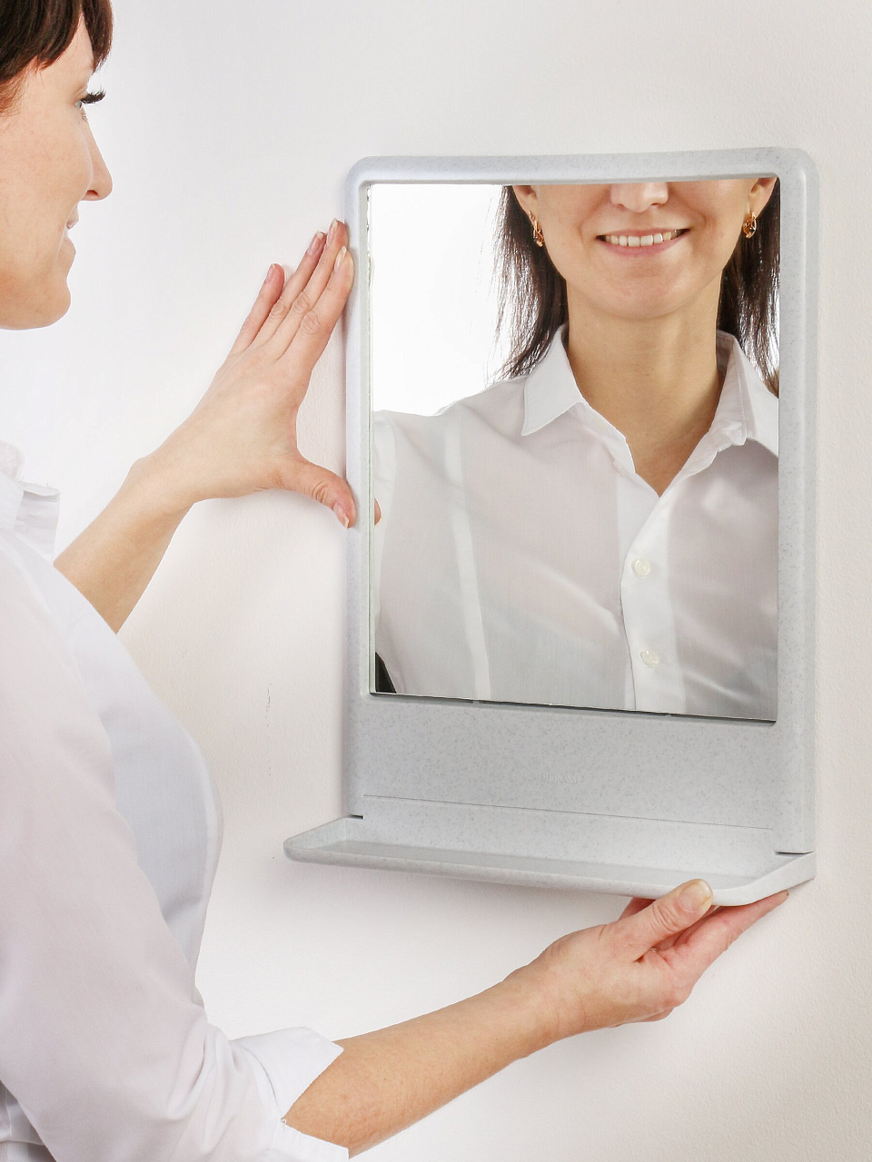 - Встроенная в зеркальную раму полочка не требует дополнительных манипуляций по навешиванию. Ширина подставки позволяет хранить на ней зубные принадлежности, косметические средства и аксессуары для волос.