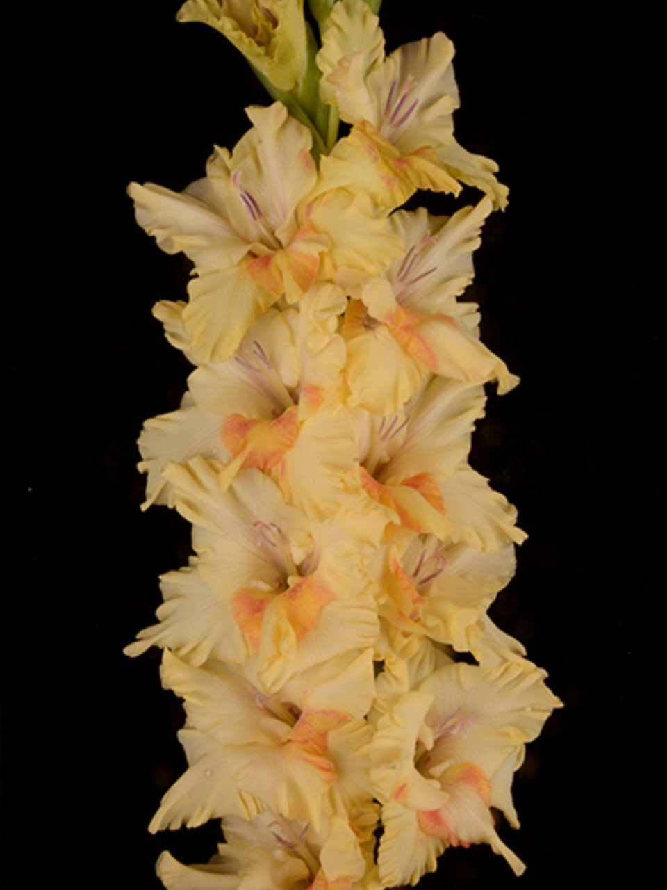 - Крупноцветковый гладиолус: луковицы стандартизированы, цветение до 120 см высотой, срок жизни — несколько сезонов