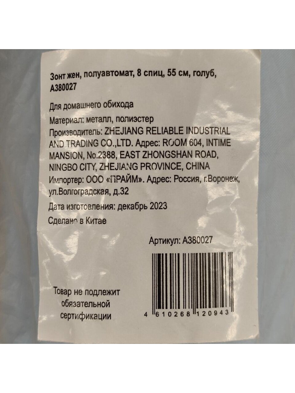 Вы можете приобрести «Зонт полуавтомат, 8 спиц, 55 см, полиэстер, голубой, A380027» и другие товары в нашем интернет-магазине в Курске по низким ценам и с бесплатным самовывозом.