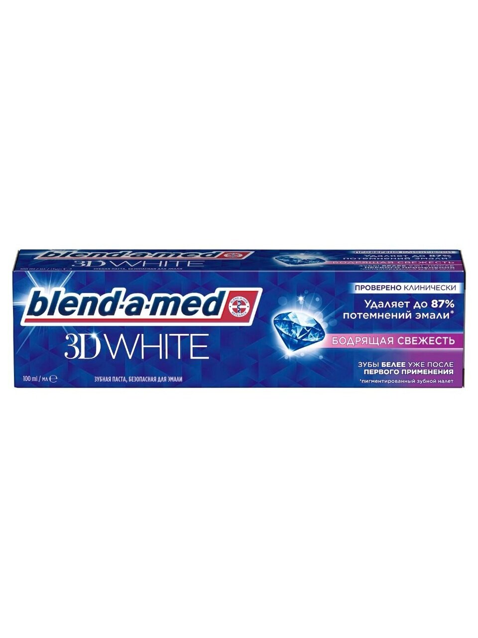 Доверьте заботу о белизне своей улыбки зубной пасте Blend-a-med 3D White «Бодрящая свежесть». Это комплексное решение 3 в 1 - зубная паста, которая отбеливает, укрепляет и защищает зубы. Её особая формула мягко удаляет поверхностное потемнение с эмали, не повреждая её структуру, и дарит сияющую улыбку, а бодрящий мятный аромат оставляет ощущение свежести.